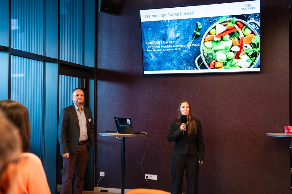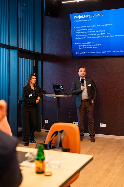 Auch wir durften auf der Bühne stehen. Neben der Moderation durften wir auch gemeinsam mit unserem Kunden GMS GOURMET GmbH einen der Vorträge übernehmen, in dem wir unser Headless Umbraco Projekt vorstellten. Die Resonanz darauf war durchwegs positiv und hat einmal mehr gezeigt, wie vielseitig Umbraco eingesetzt werden kann.