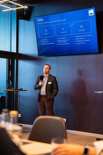 Nach einer beeindruckenden Führung durch die Raiffeisen Arena startete das Programm mit einer Mischung aus technischen Einblicken, Praxisbeispielen aus Kundenprojekten und spannenden Impulsen zum CMS. Besonders wertvoll waren die Beiträge direkt vom Umbraco Headquarter, die uns einen exklusiven Blick auf kommende Entwicklungen und Visionen ermöglichten.