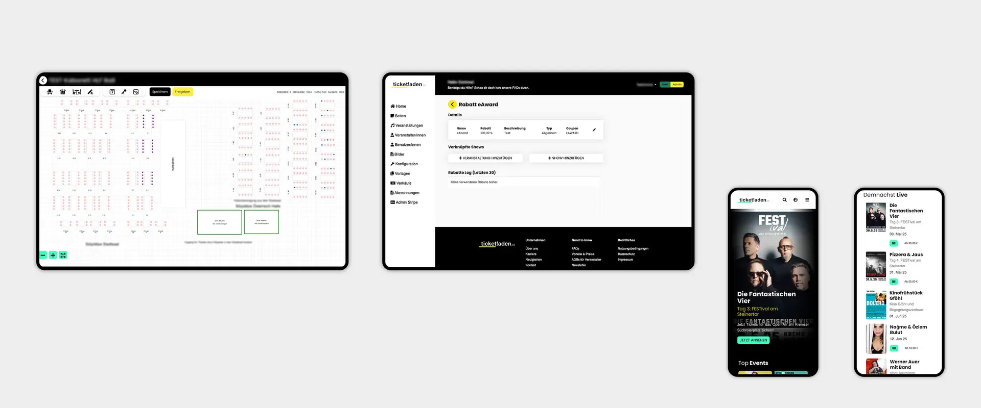 Ein technisches Highlight ist der vollintegrierte Saalplangenerator. Dieses komplexe Modul erlaubt es Veranstalter:innen einfach und unkompliziert in wenigen Minuten detaillierte, interaktive Saalpläne zu erstellen. Davon profitieren sowohl Veranstalter:innen als auch Besucher:innen enorm.